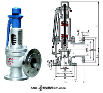 A48Y型適用于工作溫度≤350℃的蒸汽、空氣等介質(zhì)的設(shè)備和管路上,作為超壓保護(hù)裝置。