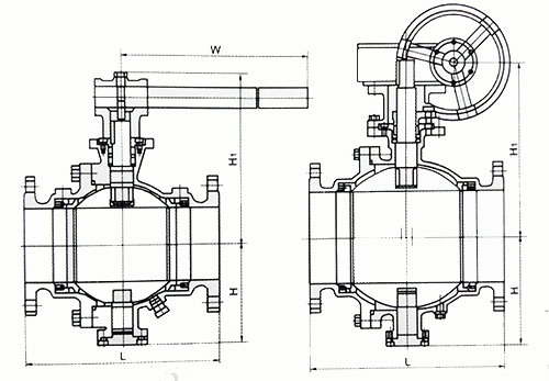 Q347F蝸輪固定式法蘭球閥結(jié)構(gòu)簡圖: