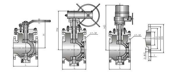 PQ340F上裝式偏心半球閥主要外形尺寸