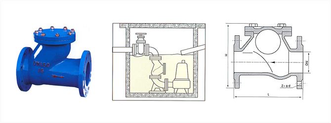 滑道滾球式止回閥,采用橡膠包皮滾球為閥瓣在介質(zhì)的作用下可在閥體內(nèi)的整體式滑道上作上下滾動從而打開或關(guān)閉閥門密封性能好消聲式關(guān)閉不產(chǎn)生水錘。閥體采用全水流通道流量大.阻力�。^損失比旋啟式小50%,水平或垂直安裝均可,可用于冷水、熱水、工業(yè)及生活污水管網(wǎng)更適合潛水排污泵介質(zhì)溫度為0-80℃。